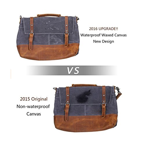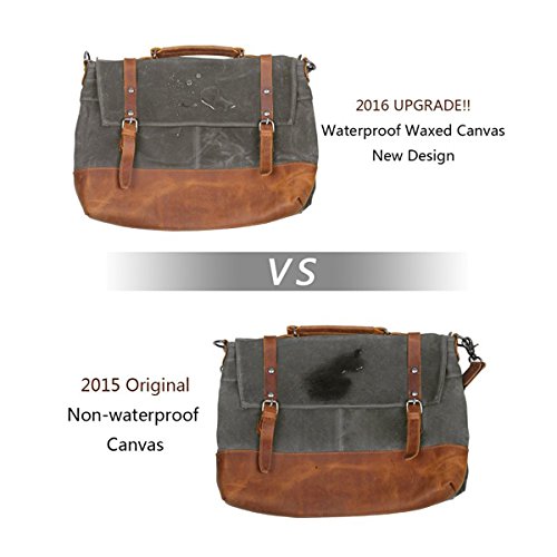 -. Feature : Material: Waterproof Waxed Canvas and Crazy Horse Leather / Dimensions of the laptop bag is about 11.8(H)*15.7(L)*5.5(W)inch; Net weight is about 1.25kg/2.7pounds / This messenger bag comes with an adjustable shoulder strap, and there is also a handle on the top of the messenger bag, you can use it as a should bag or handbag; There are two magnetic quick snap buckles on the flat of the bag, It is convenient to access / You can put A4 magazine, 14-inch laptop, textbooks, mobile phone and iPad into the messenger bag / Achieve good results in Waterproofing. Protect your duffle from getting wet.
