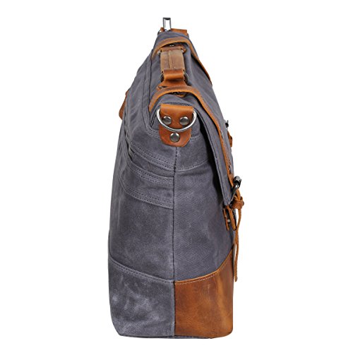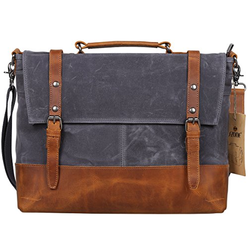 -. Title : S-ZONE Vintage Waterproof Canvas Leather Messenger Traveling Briefcase Shoulder Laptop Bag