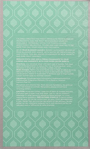 ReleaseDate : 2015-05-28 Studio : The Regatta Group DBA Beauty Depot Publisher : The Regatta Group DBA Beauty Depot Binding : Health and Beauty Product Description The scent of pear blossom agave is the perfect fragrance of summer in bloom and this dryer sheets from caldrea adds fresh fragrance to linens and garments and reduces static. Beauty is a vital force that fuses elegance, sophistication and natural goodness. Caldrea creates rich, effective and potent formulas that are also gentle, safe and effective to use for personal and household use. 0