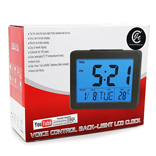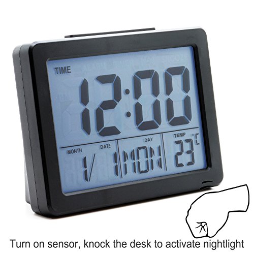 JCC Multifunction Vibration sensor Sound Control LCD backlight alarm clock with timer and world time (black)