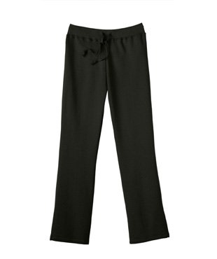 80% cotton, 20% polyester; styled for a feminine fit; sits slightly below natural waist with a differential front and back rise; double-needle coverseaming on outseam and bottom hem; encased elastic waistband with dyed-to-match twill drawcord; Light Steel is 70% cotton, 30% polyester.Feature