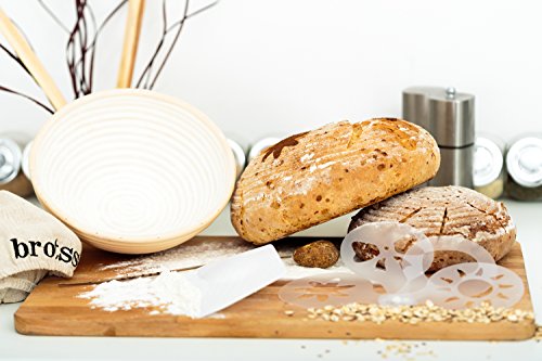 10 ITEMS PACKAGE CONTENT - Rattan Bread Proofing Basket; Dough Scraper; Cloth Liner; 6(six) Different Design Patterns; Digital eBook. This perfect gift for you or for your family and friends will make your bread surprise every time, your loved ones
