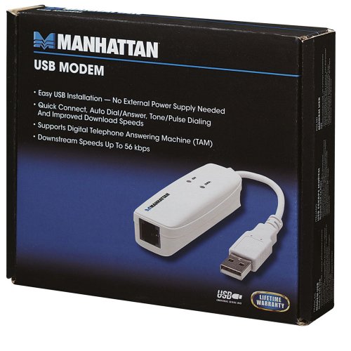 Manhattan White 56K USB Modem, Supports Digital Telephone Answering Machine (TAM)