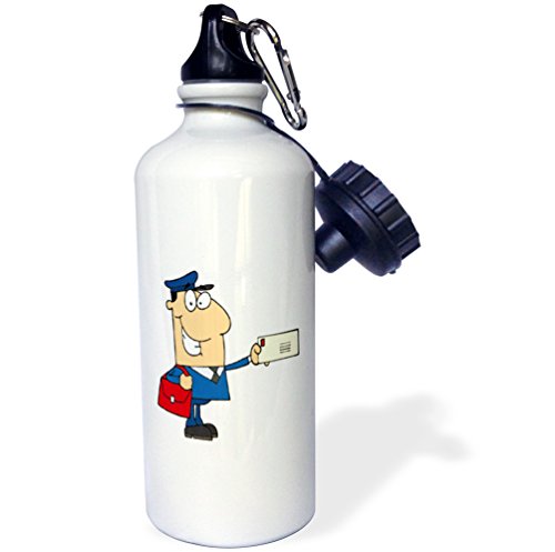 3dRose wb_118752_1 "Happy Mailman Postal Worker Delivering Letter" Sports Water Bottle, 21 oz, White