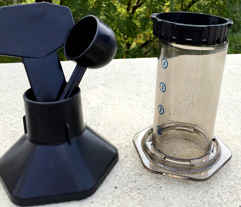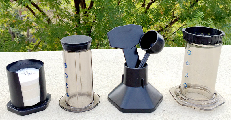 Coffee pot (pot body, pressure bar, filter), pouring funnel, special amount of spoon, stir bar, filter paper holder, a special filter paper, a manual
