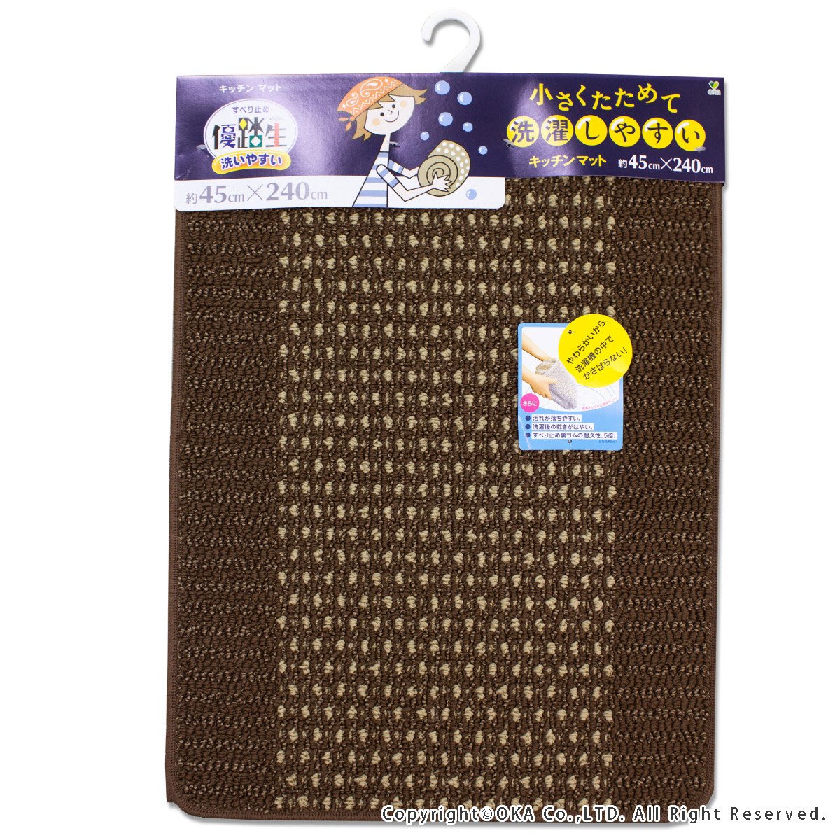 Oka kitchen mat Yu 踏生 easy to wash made in Japan Brown about 45 × 240cm