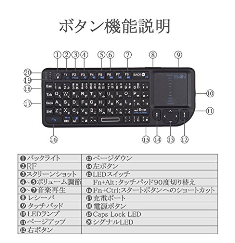 [Ewin] 2.4GHz mini wireless keyboard (EW-RW07) Japanese array (72 keys) with a touch pad mounted backlit ultra-compact mini Wireless keyboard wireless keyboard mouse integrated USB receiver [with Japanese manual] [1-year warranty per]