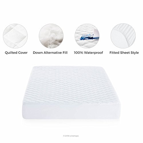 Studio : LINENSPA Publisher : LINENSPA Product Description Waterproof Protection The soft comfort of a mattress pad now offers waterproof protection. This thin mattress pad has a quiet waterproof membrane that protects your mattress from spills and accidents. The liquid proof backing is designed to guard the top of the mattress from stains while allowing airflow for breathable comfort.