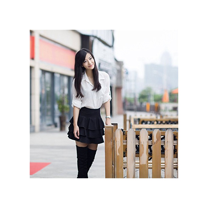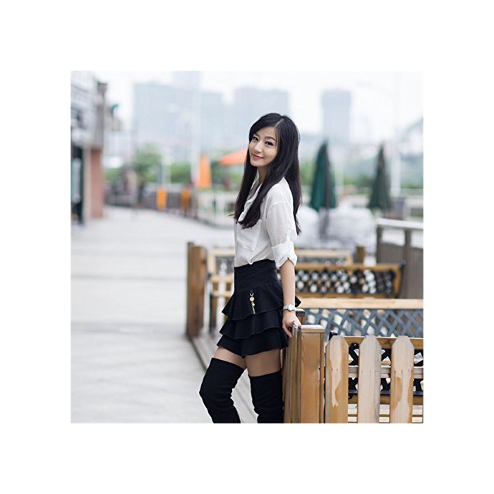 【MIKA&MAYA】 플리츠 부드럽게 스커트 심플 무지 플레어 프릴 레이디스
