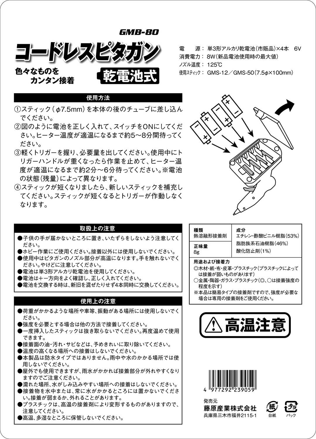 * Please do not touch the hand as the nozzle part of pita gun becomes hot during use (please be careful of burns).