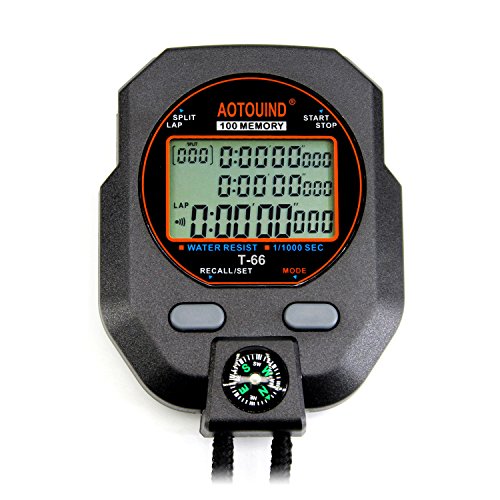 AOTOUIND Professional Stopwatch with Accuracy 1/1000 Seconds 3 Rows 100 Laps Time Alarm Compass Metronome Handheld Sports Stopwatch