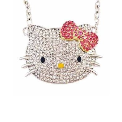 Large Hello Kitty Crystal Pendant Necklace Dimensions: Pendant roughly 1.5"L x 2"W, necklace length: 21" with 2.5" extendable chain. Material: Crystal, Zinc Alloy
