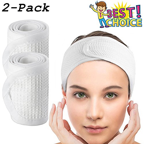 2 Pack Spa Facial Headband, COSCOD Head Wrap Terry Cloth Headband Stretch Towel with Magic Tape for Bath, Makeup and Sport Microfiber Hair Band