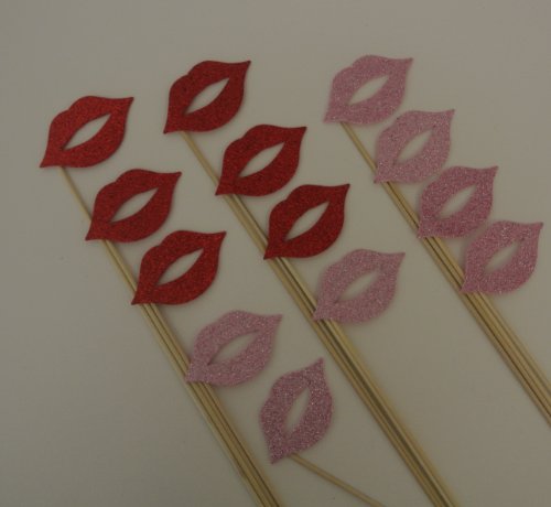 13 Pc Valentines Photo Booth Party Props Lips on a Stick Material Glitter Foamy