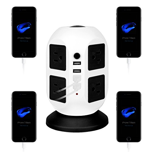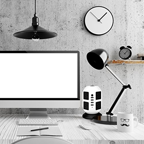 8 OUTLETS with 4 USB PORTS: Unique design to charge up to 12 devices at the same time in one station such as cellphone, tablet, laptop,lamp,and more. It's suitable for home or office use. With this usb power strip, you could plug in 4 extra devices and not use up all the sockets with phone chargers