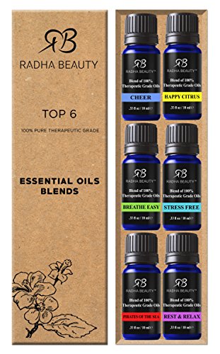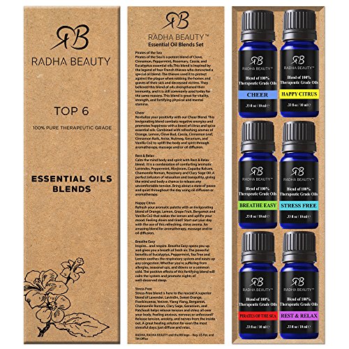 Radha Essential Oil Blends Set - 100% Pure and Natural Kit for Aromatherapy Sea of Thieves, Stress Free, Rest & Relax, Breathe Easy, Pure Healing, Happy...