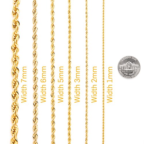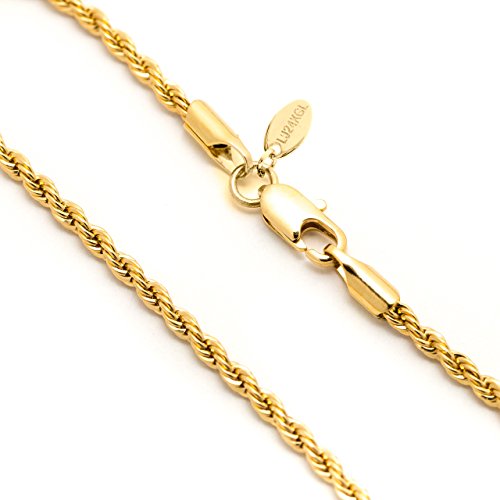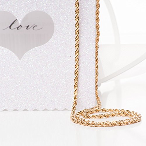 -. Feature : TIRED OF BUYING CHEAP LOOKING PLATED CHAINS? Look no more. This beautiful 24K Gold Overlay 2mm Rope Chain is stunning! It looks and feels like solid gold and is offered at a fraction of the cost. / YES, YOU CAN BUY AN EXPENSIVE SOLID GOLD CHAIN, but that's an investment. Would you wear your expensive gold chain anywhere at anytime? Not likely - it's risky. Wear this anywhere without fear. If it gets lost or stolen it's easy to replace. / FREE LIFETIME GUARANTEE - Any damage or wear will be replaced absolutely free. Our warranty is for life - THERE IS NO TIME LIMIT. Comes in a box or pouch for easy gift giving. / IMPRESS SOMEONE - When you walk into a room you'll get glances. Only you will know it's not solid - but we won't tell if you don't. / CLOTHES MAKE THE MAN (OR WOMAN) - is a phrase we believe in. Dress yourself up in jewelry that has the look and feel of solid gold. You'll feel like a new person and others may treat you differently. Try it!