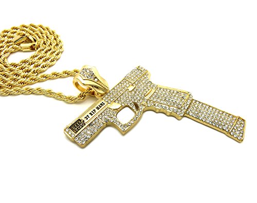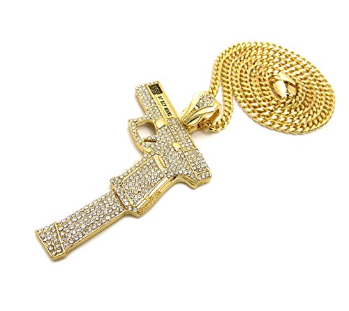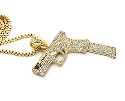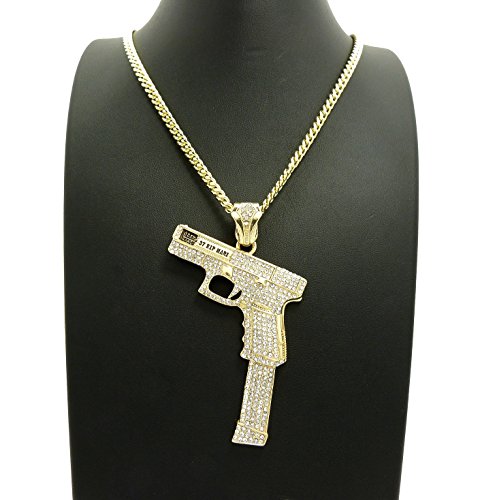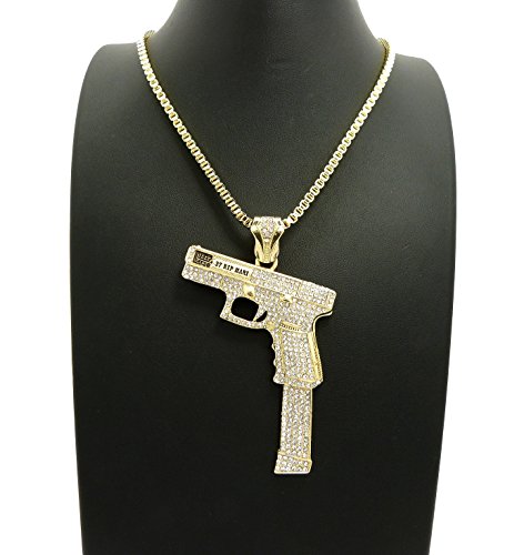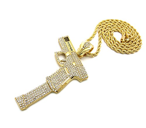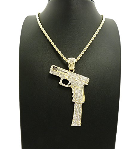 -. Title : ICED OUT GLIZZY GANG GUN PENDANT & 24" BOX/CUBAN/ROPE CHAIN NECKLACE - XZP61G