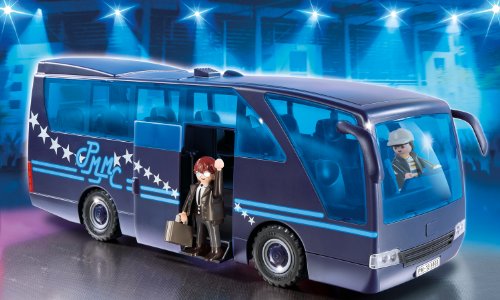 Go from one gig to the next with the Playmobil Pop Stars Tour Bus, 2 removable roof sections makes it easy to interact with musicians, Bus can accommodate up to 12 figures, Playmobil is the largest toy manufacturer in Germany, Includes 2 figures with accessories and Tour Bus