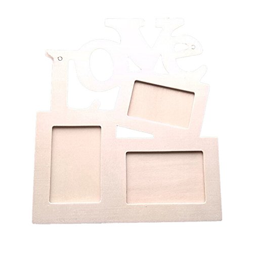 -. Feature : Love Hollow Design / Size:21.5cm*19.5cm(8.47"*7.68") / Holds 3 pictures. / Material:Wooden / Can be used to match the color of mud, you can also use acrylic paint color.