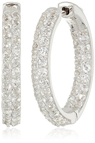 Sterling Silver White Topaz Round Hoop Earrings, 1"