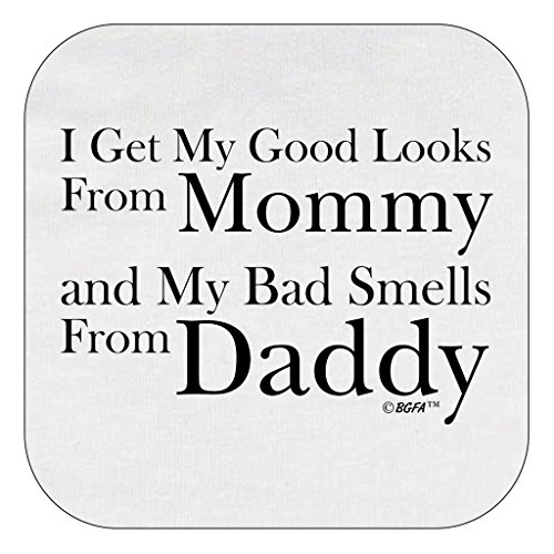 - Title : Funny Baby Clothes Get Good Looks Mommy Bad Smells Daddy Infant T-Shirt 12 Months White