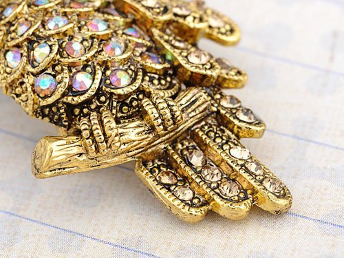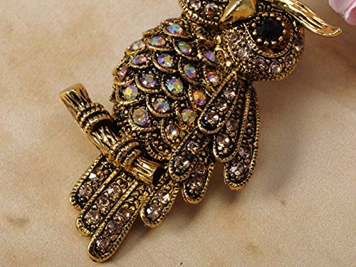 -. Title : Alilang Antique Gold Tone Light Topaz Colored Rhinestones Owl Bird Brooch Pin