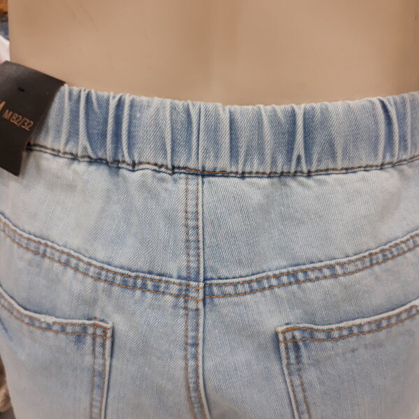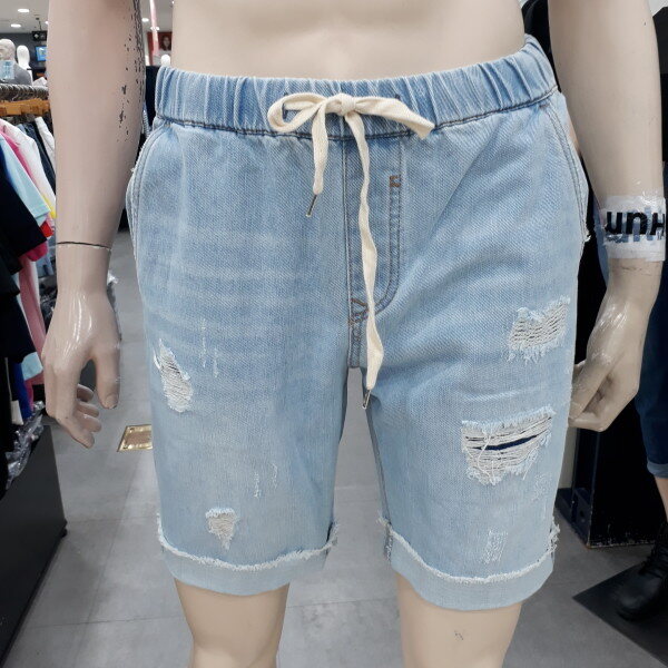 연청 데미지5 부 청반바지입니다~찢어진 부분은 다른원단으로 덧대어져 있고 ,허리에는 밴딩 처리로 아주 편안하게 입으실 수 있습니다~~밑단은 컷팅한 부분을 롤엎해서 입으실 수 있습니다~~밝은연청이며,사이즈는 28,30,32,34,36