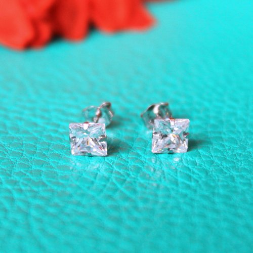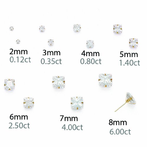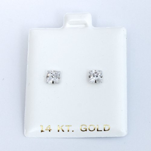 - Title : 14k White Gold Square CZ Stud Earrings - 5mm