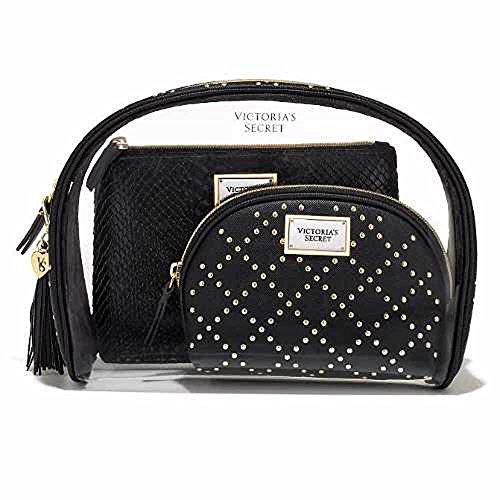 -. Brand : Victoria's Secret -. ClothingSize : One Size -. Color : Black -. Department : womens -. EAN : 0667543220250 -. Feature : Ready for a getaway, this soft travel cases are easy to clean and carries all your beauty secrets in VS style / Perfect for lotions, mists, makeup and other beauty essentials / Zipper closure / Studded bags / The biggest bag measures approx. 9.5" L x 6.5" H x 3.5'' W -. MPN : 11088639 -. PackageQuantity : 1 -. PartNumber : 11088639 -. ProductGroup : Apparel -. ProductTypeName : APPAREL -. Size : One Size -. Title : Victoria's Secret Trio Set Black Studded Cosmetic Bags -. UPC : 667543220250