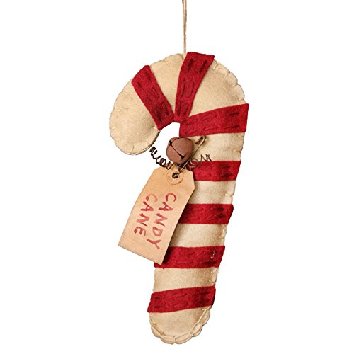 Candy Cane Striped Rustic Stitched 8 Inch Felt Christmas Ornament Figurine