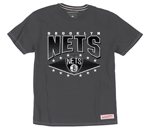 Studio : Mitchell Ness Publisher : Mitchell Ness Binding : Apparel Product Description Mitchell Ness Men's Brooklyn Nets Tailored Tee. The Mitchell Ness Brooklyn Nets Tailored Tee in Grey Mitchell Ness has been serving up athletic wear and high-style sports jerseys, jackets tees and gear since 1904 and they aren't going to be out of the game any time soon. This lightweight tailored tee features a Brooklyn Nets graphic at the center front so rep your favorite team all day long. Crewneck Slim Fit Center Front Graphic Hem Logo Tag NBA Sleeve Graphic Machine Wash Cold 100% Cotton Imported By Mitchell Ness Size Fit Model is wearing a size Medium Our model George is 5'10 with a 32 waist and 32 inseam. 0