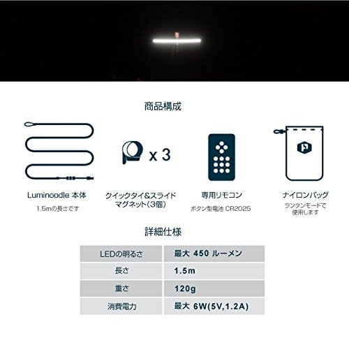 원본상품명: Luminoodle COLOR ルミヌ?ドルカラ? 高機能ロ?プ型LEDライト 1.5m 14色 リモコン付? ランタン 防水 キャンプ アウトドア 緊急時 (COLOR)