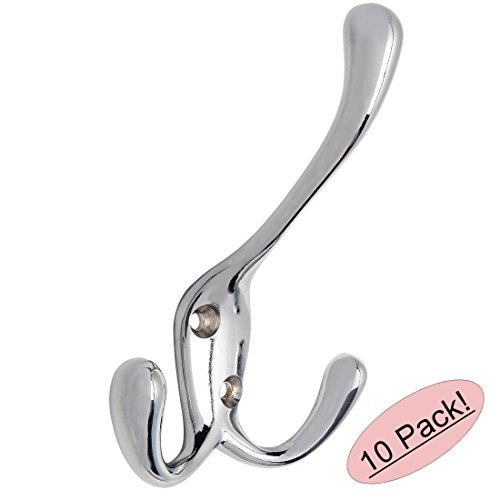 Designers Impressions 58674 Polished Chrome Heavy Duty Coat & Hat Hook - 10 Pack
