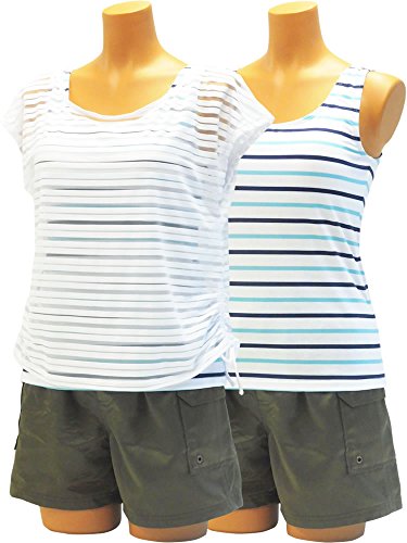 -. Title : カラー ボーダー柄 カバーアップ・パンツ付 タンキニ 4点セット レディース 水着 体型カバー AB-44213 11L BLUE