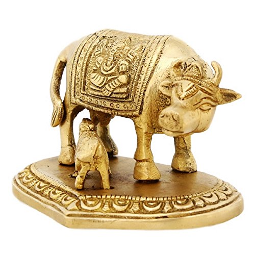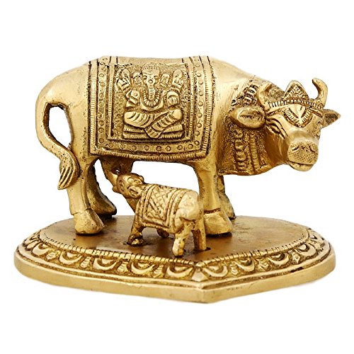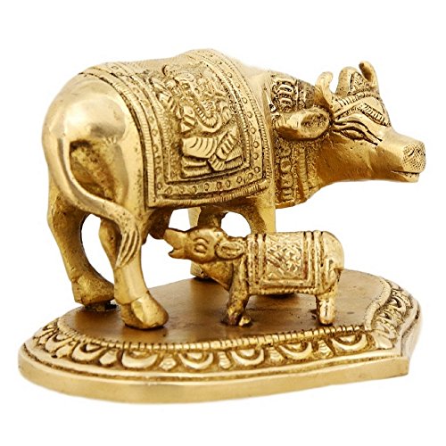 Animal Ornaments Indian Sculpture Holy Cow And Calf Home Decor Brass 3 Inches 560 Grams