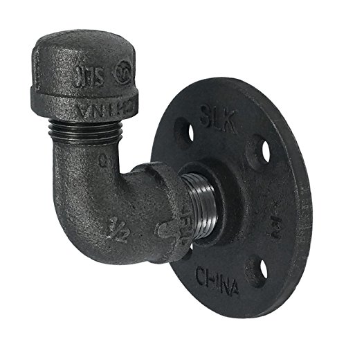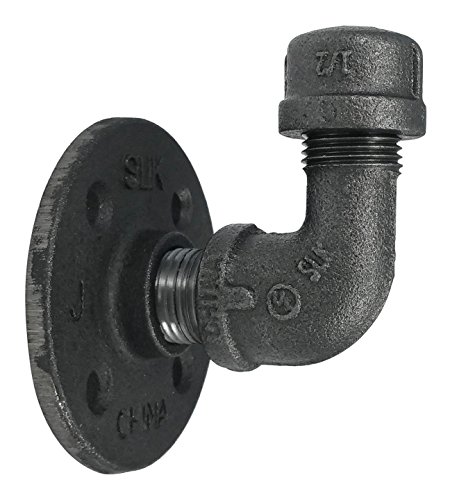 - PIPE IS STANDARD INDUSTRIAL STEEL GREY; materials and threads constructed from sturdy malleable iron; meets ASME and ASTM standards; cleaning and sealing required prior to use. Included parts: (1) ½-inch flange; (1) ½-inch 45o street elbow; (1) ½-inch cap (1) ½-inch close connector; Installation fasteners included; simple step by step illustrated instructions. Tested for durability. Manufacturer part number 360 KITHOOK1