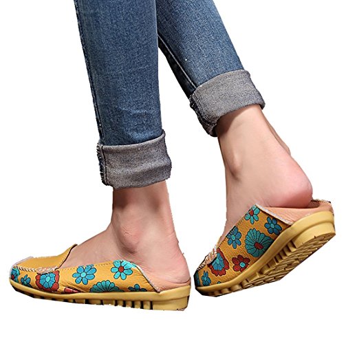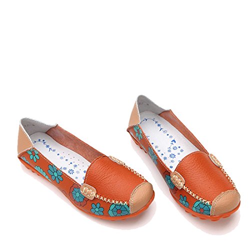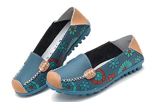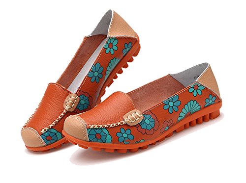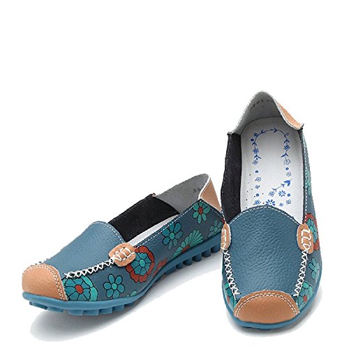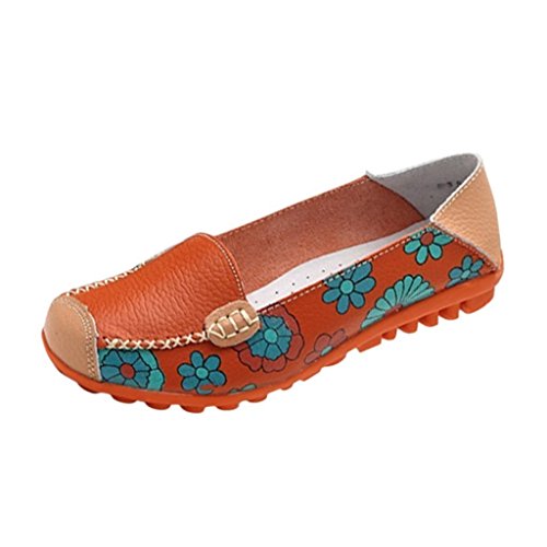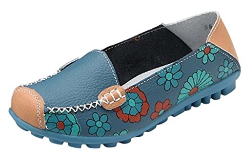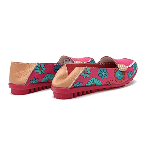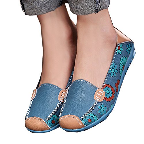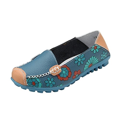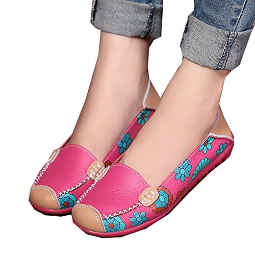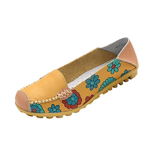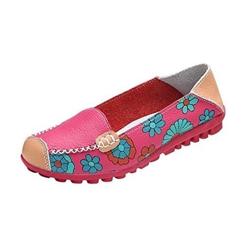 | Maybest Women Bright Color Casual Flower Printed Slip On Leather Flat Pumps Moccasins Dancing Shoes |