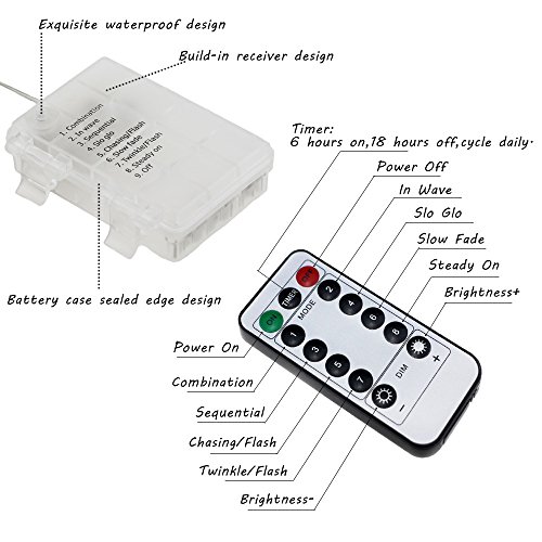 Newest Indoor and Outdoor Weatherproof Transparent Battery Box with remote control technology-ON/TIMER/OFF,8 lighting model,Dimmer.3*AA battery needed.