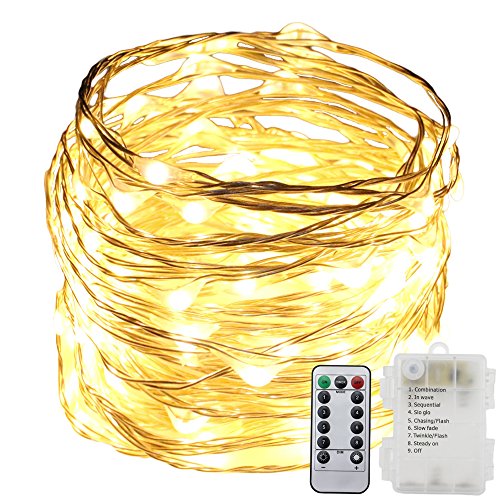 ER CHEN(TM) 8 Lighting Model Indoor and Outdoor Waterproof Battery Operated 120 LED String Lights on 20 Ft Long Ultra Thin Silver Coating Copper Wire with 13 Key Remote Control(Warm White)