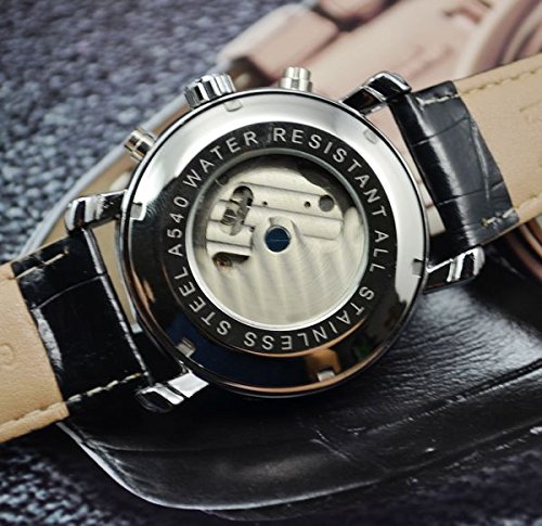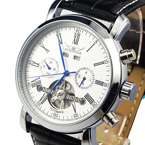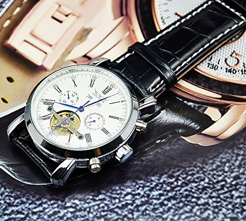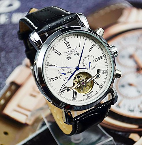-. Feature : GuTe-picked Elegant Mechanical Self-wind Watch Automatic For Gentlemen / day,date,month and year functions Sub Dials. / Elegant white watch dial with blue hands. Roman Numerals / Decoration Tourbillon Window / Come with GuTe Minimalist Kraft Watch Box to you. ECO-packaging :-)