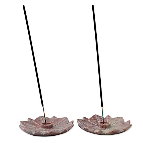 NOVICA "Rose Lotus" Hand-Carved Soapstone Incense Stick Holder (1-Pair)