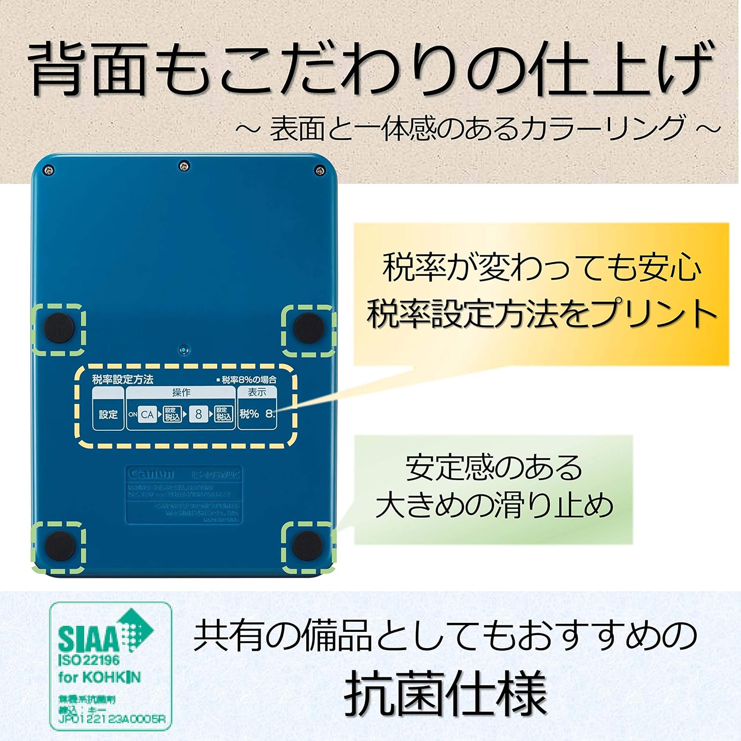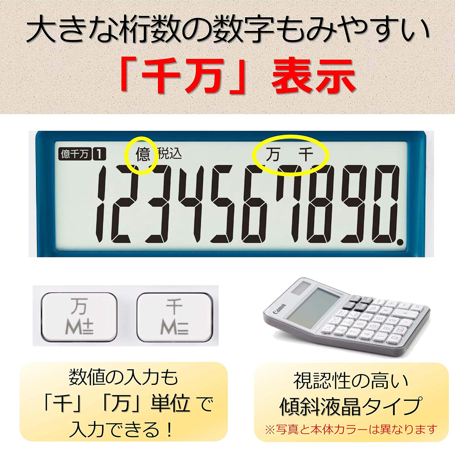 製品概要:華やかなホワイトとのツートンカラー。10桁ミニ卓上電卓。