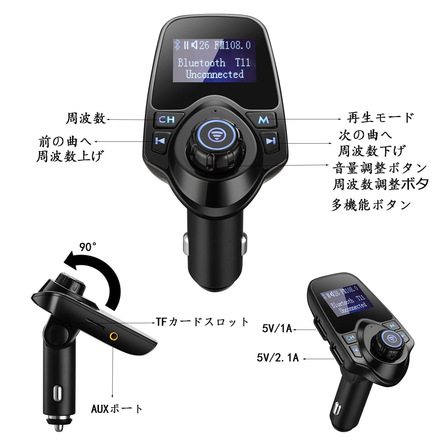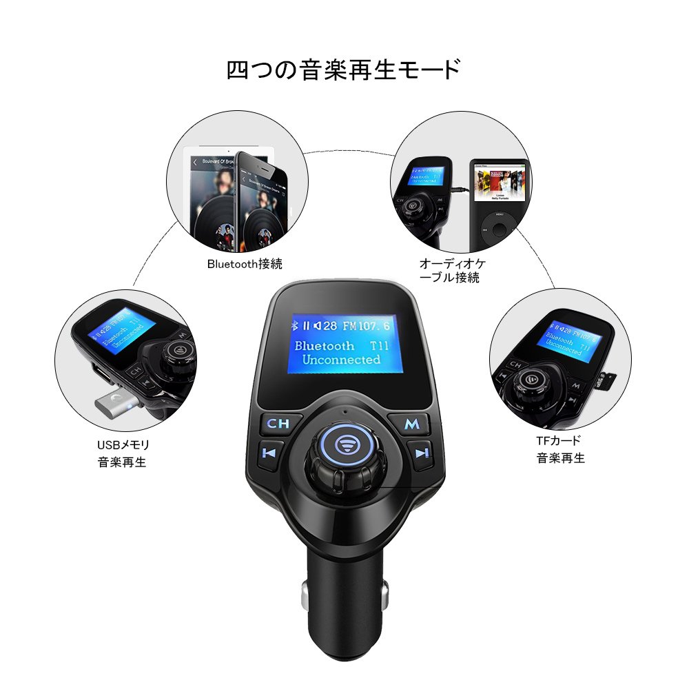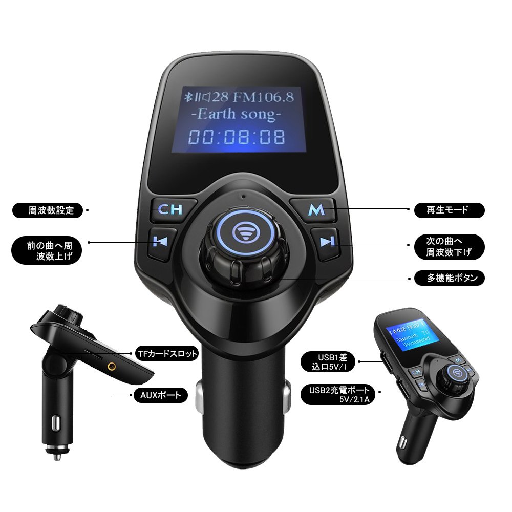 Music can be played from the car speaker even if the body and other smartphones etc. are continuous with the AUX cable, and FM frequency adjustment is unnecessary.