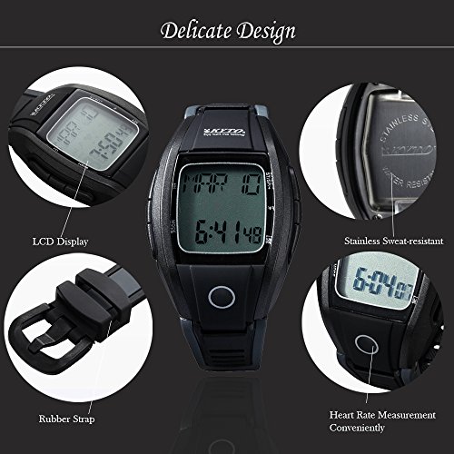 -. Binding : Wireless Phone Accessory -. Brand : TOP YAO -. Color : Black -. EAN : 0612085509233 -. Feature : Calendar: time and date can be in style of 12 hours or 24 hours / Real time heart rate/ Max,Min average and present heart rate and alarm when the heart rate goes too fast / Calorie automatic counter and training level indication / EL light, you can use the watch at night. / Stop watch, 35 laps,1/100 Sec and Time alarm and Waterproof -. Label : TOP YAO -. Manufacturer : TOP YAO -. PackageQuantity : 1 -. ProductGroup : Wireless -. ProductTypeName : WIRELESS_ACCESSORY -. Publisher : TOP YAO -. Studio : TOP YAO -. Title : TOP YAO Professional Digital Heart Rate Monitor Wrist Watch Calorie Automatic Counter Water Resistant Fitness Health Sport Watch for Men and Women -. UPC : 612085509233