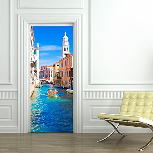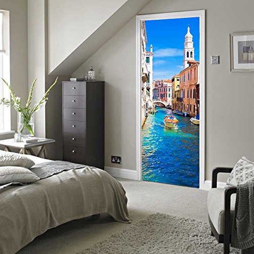 -. Title : CaseFan 3d Door Wallpaper Murals Wall Stickers--Old Town for Home Decoration Self-adhesive Vinyl Removable Retro Art Door Decals 30.3x78.7"