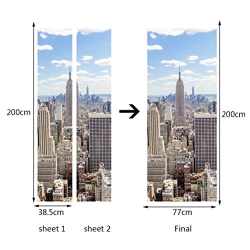 -. Feature : Self-adhesive door mural paper,home decoration DIY item / Made of eco-friendly vinyl from China.Removable and waterproof,reusable with no damage / Finish on wall size:77x200cm/30.3x78.7" / It can be suitable for any clean,dry,smooth free surface.Easy peel and stick ,spark people's creative instincts / Make you easy to decorate your home and have a new visual impact