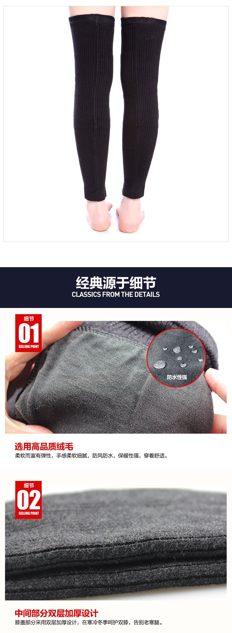 设计特点 | 经典设计. 男女少老皆宜使用. 尤其适合那些怕冷的人. 且针对风湿性关节炎,关节疼有非常好的保护作用. 适合冬日骑车族,晨练者. 能起到关键性的保护作用. 同时也是是送老人、亲朋好友的贴心礼物. ? 上身紧贴.弹性很好.膝盖处双层加厚处理 上下口加固高弹处理.弹性大.不下滑. 前后全包款.织工非常紧实. 初穿时可能会觉得紧.这是正常的. 无论穿多长时间都不会下滑哦! |