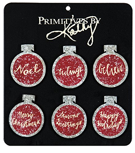 Set/6 Tin Red Ornament Christmas Magnets by Primitives By Kathy