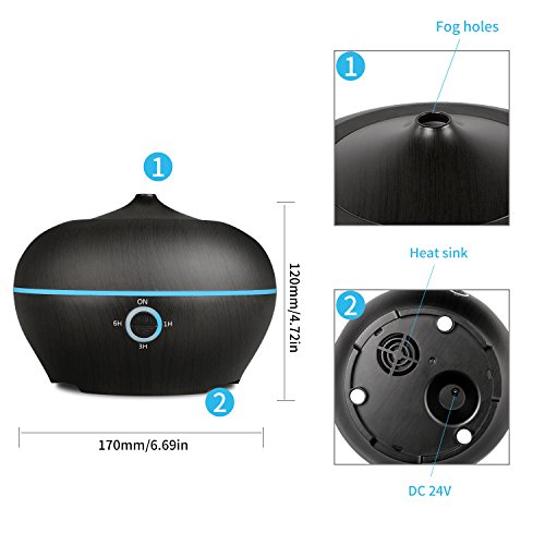 Product size: 7 * 7 * 5.5 in Net weight: 23.1 oz Advanced ultrasonic technology: 2.4 MHZ Working time: 8 hours Input power: ac100-240 v 50/60hz Support for water shortage protection Add wet area 10 to 60 ㎡ Simple operation: